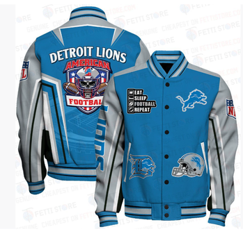 9 Diseños Detroit Lions Windbreaker Camisas de béisbol Chaquetas de vuelo Cremallera Botón Pullover Sudadera con capucha Impresión personalizada
